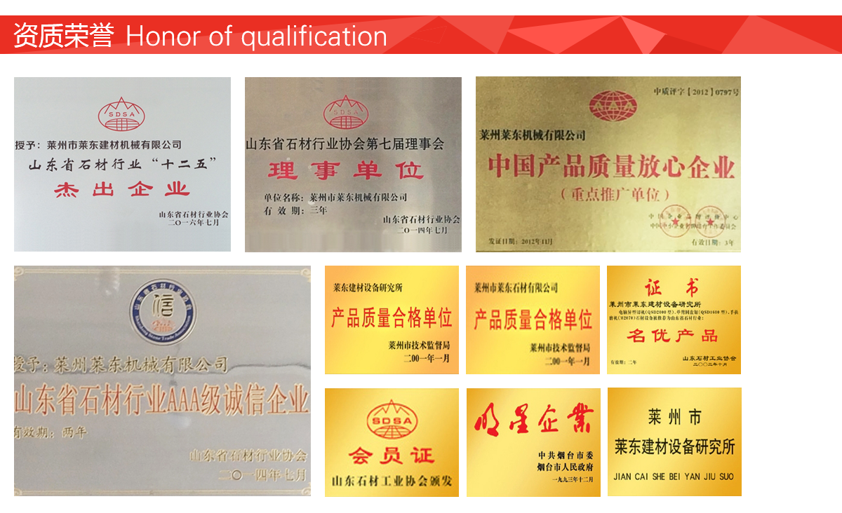 山東萊州萊東機(jī)械有限公司(原萊州萊東建材設(shè)備研究所),是專業(yè)研究生產(chǎn)石材機(jī)械的骨干企業(yè),常年與國(guó)內(nèi)幾家知名大學(xué)和設(shè)計(jì)院合作研究開(kāi)發(fā),不斷推陳出新。